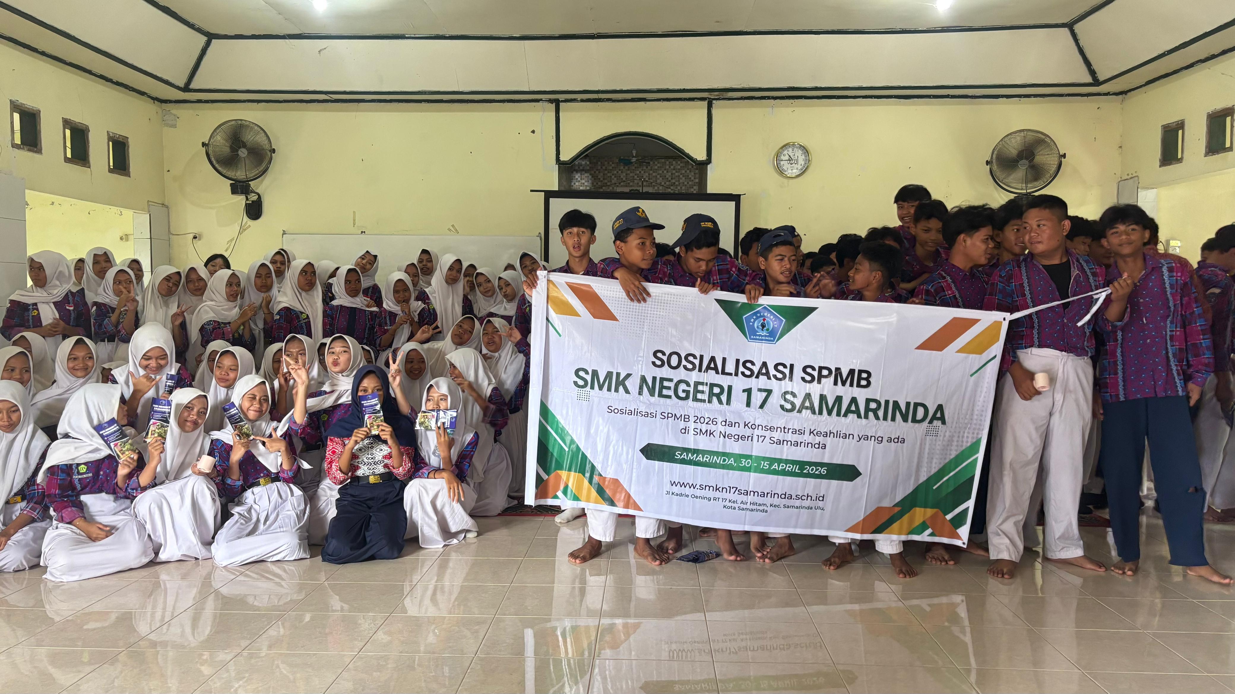 SMKN 17 Samarinda melaksanakan lagi sosialisasi SPMB 2026 ke SMPN 27 Samarinda yang ada di Jl. Batu Cermin RT. 04, Kelurahan Sempaja Utara, Kecamatan Samarinda Utara, Kota Samarinda. Tanggapan dari siswa kelas IX sangat antusias padahal sebelumnya mereka sudah mendapatkan sosialisasi dari Sekolah Menengah lainnya. Ucapan terimakasih kepada bapak Kepala Sekolah SMPN 27 Samarinda dan juga Waka Kurikulum bapak Herianto yang sudah memberikan kami kesempatan untuk melakukan kegiatan sosialisasi di SMPN 27 Samarinda.
